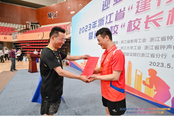 2023年浙江省"建行钟声杯"乒乓球比赛暨省高校"校长杯"乒乓球个人赛日前在宁波大学圆满结束。我校党委委员、副校长汪泽斌在本次比赛中获得“校长杯”乒乓球个人赛冠军。