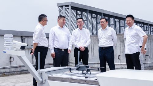 领导们先后参观了研究院和其入驻企业浙江城安大数据有限公司(简称“浙安数”)的智算中心、无人机遥感网以及办公区域。