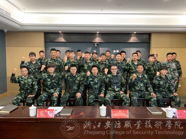 教官团2017级代表沈广对2018-2019学年第一学期工作进行总结。在本学期,教官团承担老生集训、2018级1100多名新生军训、温州市籀园小学军营体验活动训练、外校来宾来访接待等工作,参与献礼祖国七十华诞元旦升旗等活动,深入参与“准警务化”教育日常管理,圆满完成学院交待的各项任务。
