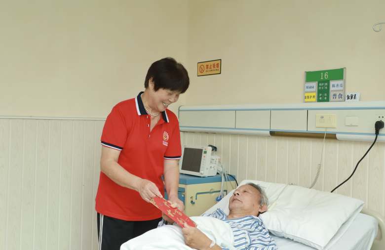 温都讯 9月15日,红日亭负责人孙兰香在上午跑完第36棒亚运火炬接力后,下午就把大爱传递给在温州曙光医院治病的郭阿公——给郭阿公送上2000元慰问金以及慰问品。当天,来自四川壤塘的藏族学生泽旺初和桑青卓玛,也给郭阿公送上牛奶和面包。她们是浙江安防学院学生,来温州上学的第一天就做慈善,她们还成为“肤生工程”的志愿者。