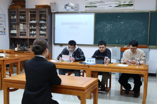 (图为学生接受服务人员实习岗招聘面试)