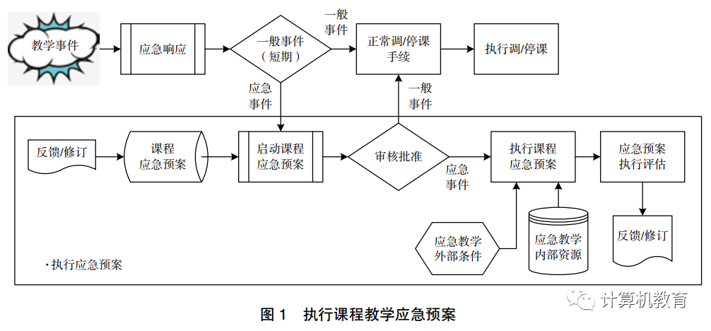0 引 言 2020年初,一场突如其来的新冠肺炎传染病爆发,因疫情持续扩散、全民防疫需要而采取的极为严格的“封城”措施,影响了各级各类学校新学期的开学上课。日复一日,眼看抗“疫”成为全国性的相对持久战。那么,既定的学习任务又该如何完成呢?教育主管部门果断做出的“停课不停教、停课不停学”决定得到各级教育部门的层层落实,得到各级各类学校的积极响应,也得到广大师生的普遍理解、认同和欢迎。 1 问题的提出 对于高等院校来说,“停课不停教、停课不停学”最有效的措施当然是开展线上教学。因为是突然爆发的疫情,果断决定的“封城”,紧急要求“不停教、不停学”完成既定教学任务,学校和教师们仓促应对,所以,原先感觉良好的通信网络条件、学校多年积累的信息化教学成果等一下子被打回原型,一时间抱怨声四起??这一切皆因“突如其来”而“措手不及”。 疫情来得突然,可深究之下也在情理之中,这尚属自然现象,古今中外时而有之,恐怕2003年流传我国的非典疫情尚在人们记忆中。现实生活中,除了疫情爆发,还会有其他一些“突如其来”的事件需要面对。那么,抗“疫”过程能不能教会我们沉着地科学应对而处变不惊、化险为夷呢?为此,有必要认真研究“课程教学活动的应急预案”。 2 课程教学中的应急事件 所谓课程教学中的应急事件是指在事先未预警的情况下,围绕学校发生的,可能直接或间接地对既定课程教学活动产生威胁或造成不良后果,并且在时间压力和不确定性极高的情况下,为保证教学活动的持续性和完整性,必须对其做出关键决策的事件。 学校是一个公共性社会组织,其教学应急事件的来源主要有两个方面:一方面来自社会大环境,属于不可抗力因素导致;另一方面来自学校自身,主要伴随学校建设发展而来。 社会成因:是指不可抗力因素导致的应急事件,如突发公共卫生事件,包括食物中毒、疫情、传染病爆发等;突发自然灾害,包括火灾、地震、台风、暴雨、暴雪、泥石流等,或者因自然灾害而导致的突发公共安全事件(如日本的福岛核泄漏事件)等;突发社会问题,包括战争、恐怖事件等[1]。这些成因的共同特性都是不可抗力,学校不能改变,只能应对;有些应对还要配合外部环境情况,如这次的新冠肺炎疫情。 内部成因:可分为人、物、环、管4个方面。①人:来自教师个人的原因,如教师因故长时间调、停课,或者学生因个人安全事故而出现的不同状况等。②物:教学设备等的运行、故障、资源调配问题。③环:当前高校所面临的竞争环境,特别是近年高职扩招带来的教育资源紧张、教学设备不足等影响教学的问题。④管:主要指的日常教学管理中存在的漏洞、不足,以及高校为适应扩张发展而实施的分校区建设,造成的管理面拓宽、管理层次增多、管理成本和难度增大等一定程度影响教学的事件。这些成因的共同特性表现为学校可以通过加强制度建设、物质保障、资源建设等预防事件的发生或减少事件造成的不良影响。 高校课程教学应急事件的特性可以归纳为4个方面。 (1)突发性和紧急性。应急事件发生前虽然有征兆和预警的可能,但是由于真正发生的时间、地点具有一定的不可预见性,而且也超出了正常的课程教学运行约束,因此具有突发性和紧急性。如果事前没有相应的预案,那么往往是防不胜防,管理者和当事人措手不及,难以应对。 (2)不确定性。由于环境的不确定性和人的有限理性、信息的不对称,应急事件往往产生不确定性[2]。这种不确定性主要表现为状态不确定性、影响不确定性和危机回应不确定性,如这次抵抗新冠肺炎蔓延,学校迟迟不能确定复校时间给社会各界带来的被动。 (3)非程序性。应急事件的处理时间有限、信息有限、资源有限,危机情况下的应对策略往往更多地是基于人工判断,而不是科学推理,因此,应急事件具有处理的非程序性。 (4)双重效果性。应急事件会对正常的课程教学带来不同程度的影响,但也蕴含着机会。如果管理者能抓住机会,就很可能带来新的收获。 3 课程教学应急预案的基本策略 既然影响课程教学活动的事件并非鲜见且常常来势凶猛,凡事“预则立”,日常就完全有必要为之建立应急预案。所谓课程教学应急预案是指为有效预防和控制可能发生的课程教学应急事件,最大程度地减少课程教学应急事件对正常课程教学活动造成的影响而预先制定的工作方案。 研究表明,课程应急预案的建立应坚持“3早+2备+2倍”的策略,即早发现、早报备、早准备、保障加倍、效果翻倍。 (1)开展应急意识、应急能力的教育与培训,提高师生辨识、应对应急事件的能力,实施首问责任制,对应急事件早发现、早报备[3]。 (2)制订科学的应急预案和应对计划,提升教师信息化教学水平,丰富课程教学资源库,完善在线教学资源,实施课程负责人制,“一事多措”,未雨绸缪,早准备。 (3)加强教学资源的调配以及信息网络、教学设备的维护,做好课程教学所需的物资保障、设备保障、技术保障,居安思危,保障加倍,确保“拉得出去打得赢”[4]。 (4)完善管理措施,提高管理水平,实现应急管理常态化。通过优化学校的组织机构设计,明确各部门的职责与分工,建立高效率的管理机制,规范各项制度,实现应急组织管理的常规化,不推诿,重协同,应急效果翻倍。 4 课程教学应急预案的制订原则 为有效预