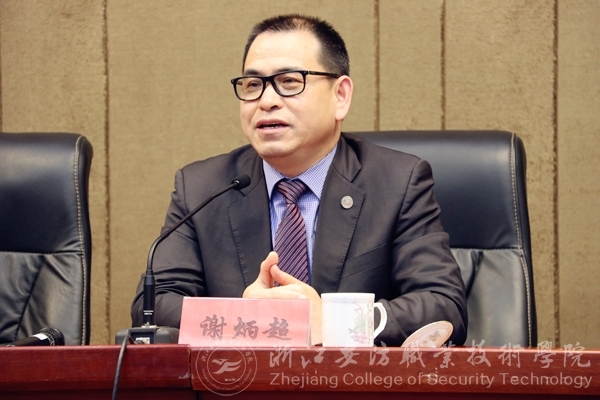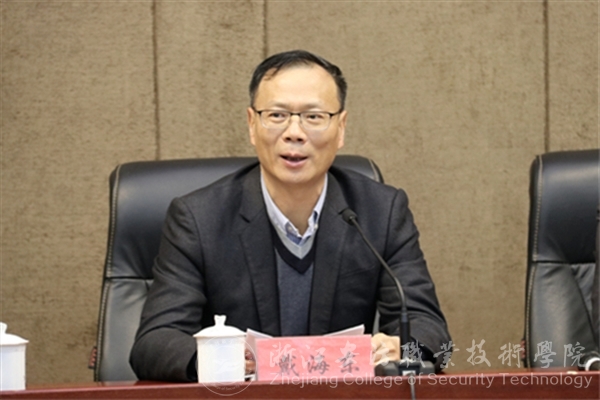 新世界发展集团有限公司董事长谢炳超作讲话,表示学院的专业与公司的人才需求相符度高,期待与安防学院通过合作定向培养的方式为新世纪发展集团储备能力强知识广素质高的专业人才。