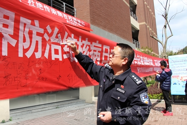 黄小中副院长带领后勤保卫处相关同志参加了现场签名活动并充分肯定了开展校园传染病防控的必要性及重要性,指出校园传染病防控任务艰巨、责任重大,要求全院上下共同努力,杜绝传染病在校园流行。