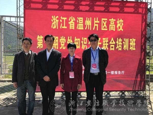 发表时间:2017-04-16 来源:彭苑茹 浏览量:次 4月14日至15日,浙江省温州片区高校第一期党外知识分子联合培训班在温州医科大学举行。我院副院长兼纪委书记杨枝立出席培训班开班仪式,匡泰、陈秀娟、刘海洲三位老师参加此次培训。