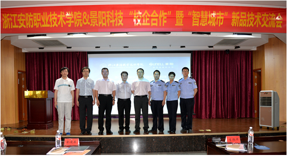 发表时间:2015-06-25 来源:管理员 浏览量:次 6月24日下午,我院与景阳科技“校企合作”暨“智慧城市”新品技术交流会在学院报告厅圆满举行。安防学院党委副书记、院长金凌森,安防学院党委委员、副院长胡伟国、市公安局科技信息化局长包家顺、景阳科技的副总经理李颜平出席了交流会。
