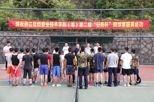 在开幕式上,温州警校校长胡益逊致开幕词并宣布本届网球赛开幕,随后,胡益逊校长的开球拉开了本届“安防杯”网球赛的帷幕,在开幕式的最后,所有参赛队员与校领导一起观看了校网球队张豫老师和盛冰老师的表演赛。在本次开幕式中,参赛选手的青春活力给领导留下了深刻的印象,两位老师的精彩表演赛更是令领导赞不绝口。