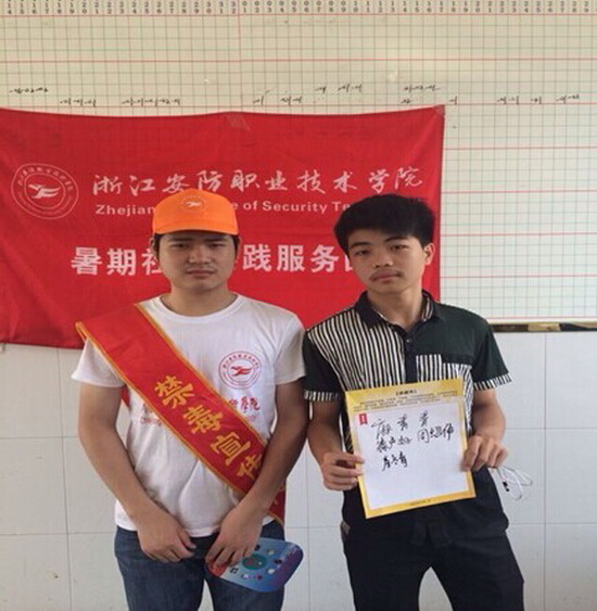 发表时间:2015-07-10 来源:管理员 浏览量:次 经过前期的准备和培训,浙江安防职业技术学院防毒安家实践队12名队员进驻山清水秀的永嘉进行为期两周的禁毒宣传活动。据实践队队长郑杰夫透露,此次的实践活动重点关注的是青少年防毒拒毒问题。因此中小学校园成了他们宣讲防毒禁毒的主要阵地。