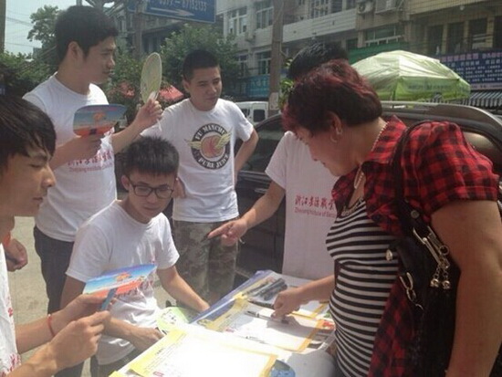 2014年7月5日,在永嘉第二中学,志愿者们登上讲台,对学生进行了防毒知识的宣讲。他们利用宣传资料,向师生们展示了摇头丸、冰毒、K粉等新型毒品的实物图,增强学生辨识毒品的能力;他们利用温州市禁毒教育基地提供的具体详实的案例的讲述感染学生。学生认识到了吸食毒品,家毁人亡的惨痛后果,认识到了毒品的危害性;他们组织学生们一起学习《禁毒法》的相关内容;志愿者们还对学生提出了要求,要求学生们争做小教员,将学到的知识带回家。永嘉二中的学生纷纷表示,禁毒防毒,要从自身做起,自觉做到不沾染毒品,并在“珍爱生命,远离毒品,共创和谐”的防毒拒毒承诺书上庄重签名。队长郑杰夫告诉记者,他们实践队还要去更多的学校,想更多的中小学生宣传防毒禁毒知识,在校园筑起毒品的防区。