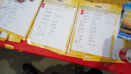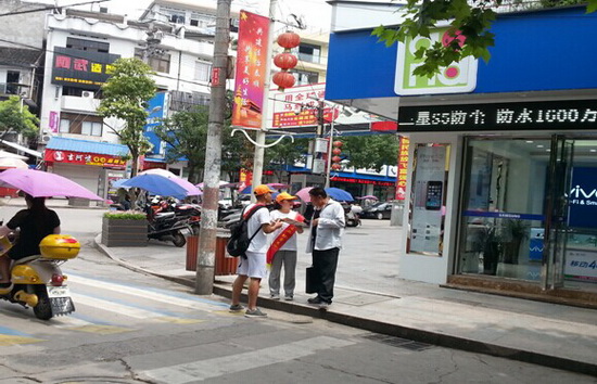 下午,炎炎烈日依然挡不住禁毒卫士们的满腔热情!实践队成员们在仕阳镇的街道上进行“一对一”的禁毒宣传活动。语言的不同阻挡不了交流的脚步,在挨家挨户的宣传过程中,承诺书上签名一个接一个多起来,这是泰顺县的人民对禁毒活动的支持,也是对实践队成员第一阶段的禁毒宣传工作的有力肯定。