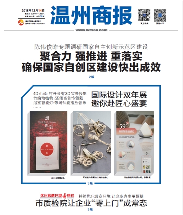 温州商报头版:国际设计双年展邀你赴匠心盛宴